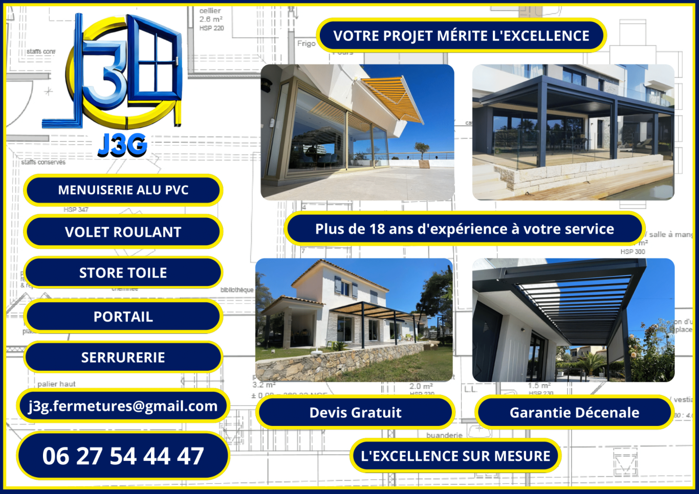J3G vous propose une large gamme de produits, allant des fenêtres et portes aux vérandas et pergolas. Que vous recherchiez des solutions pour votre maison ou votre entreprise, vous trouverez certainement ce dont vous avez besoin dans notre catalogue varié. Faites confiance à notre expertise pour vous fournir des produits de qualité et sur mesure pour répondre à vos besoins en matière de menuiseries.